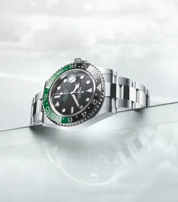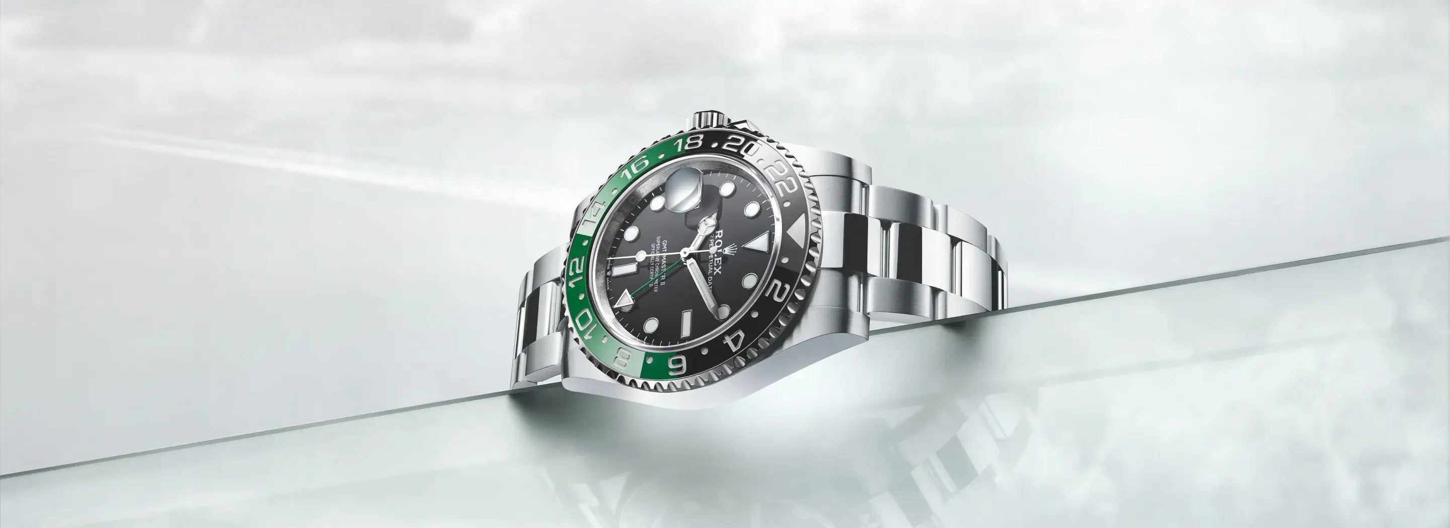 Tanto por sus funciones como por su nombre, el Oyster Perpetual GMT-Master II hace referencia directa a los husos horarios y a los viajes de larga distancia