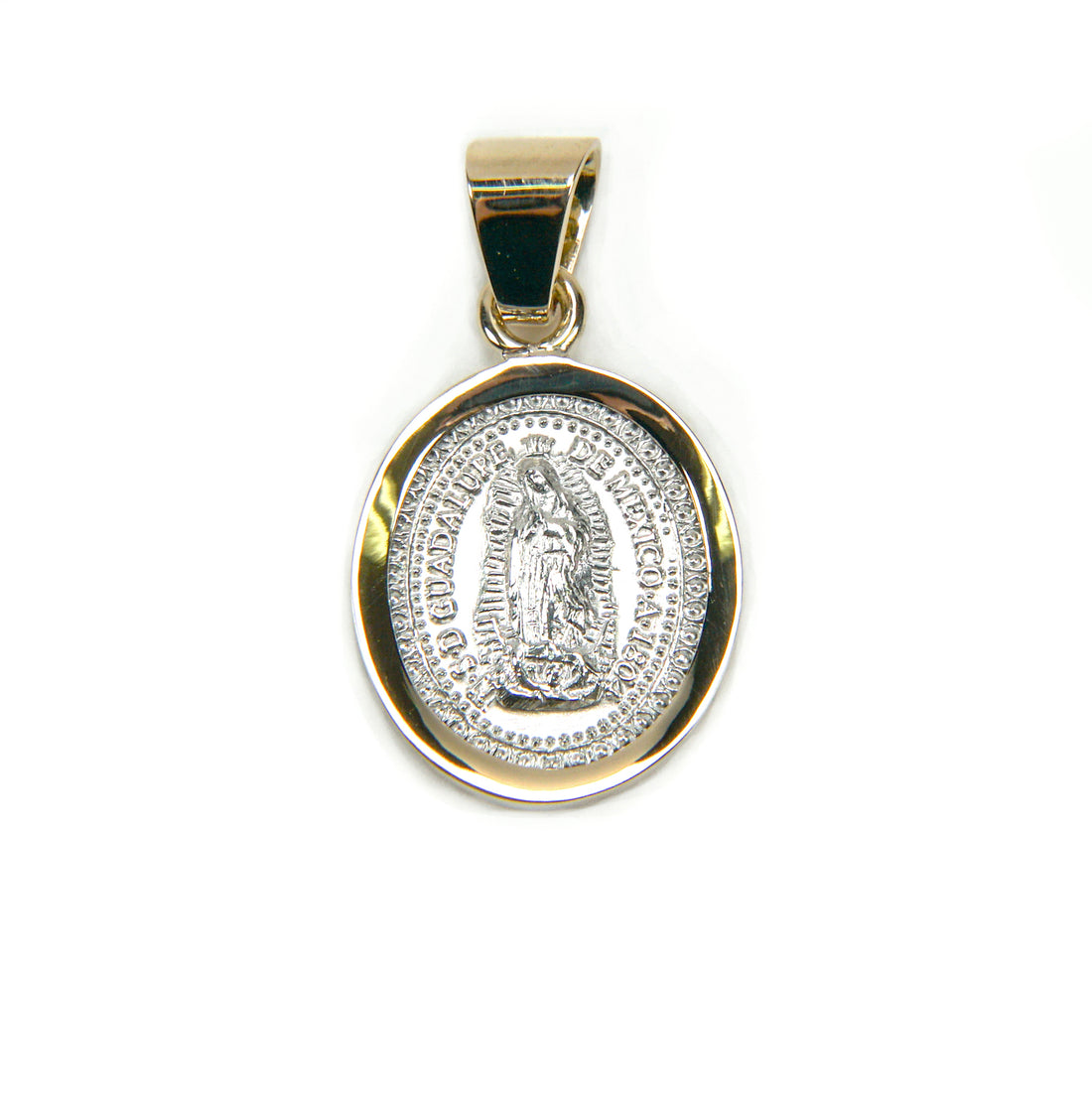 Oval 1: Medalla de Guadalupe en plata con bisel de oro 14k, marca Tressor. Troquel...