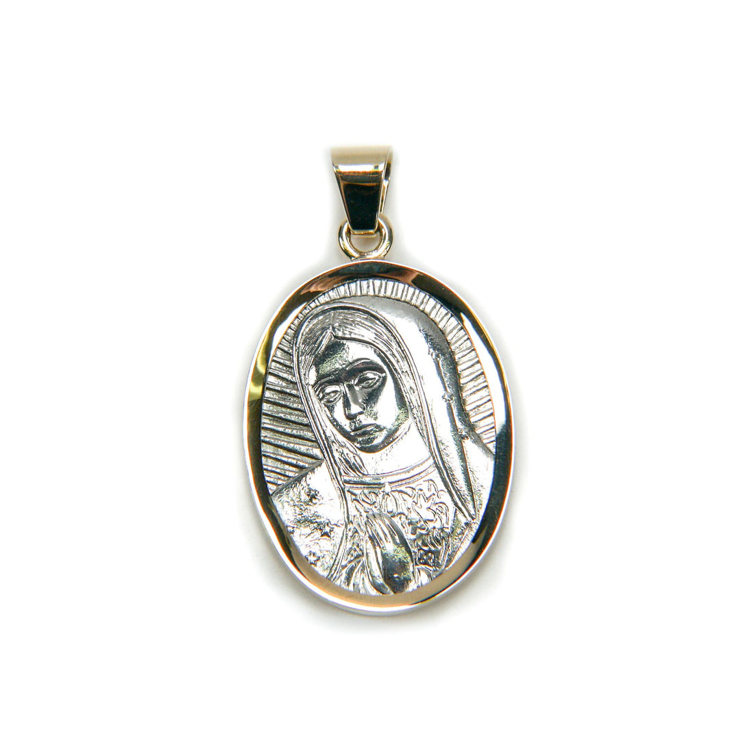 Oval 4: Medalla de Guadalupe en plata con bisel de oro 14k, marca Tressor. Troquel...