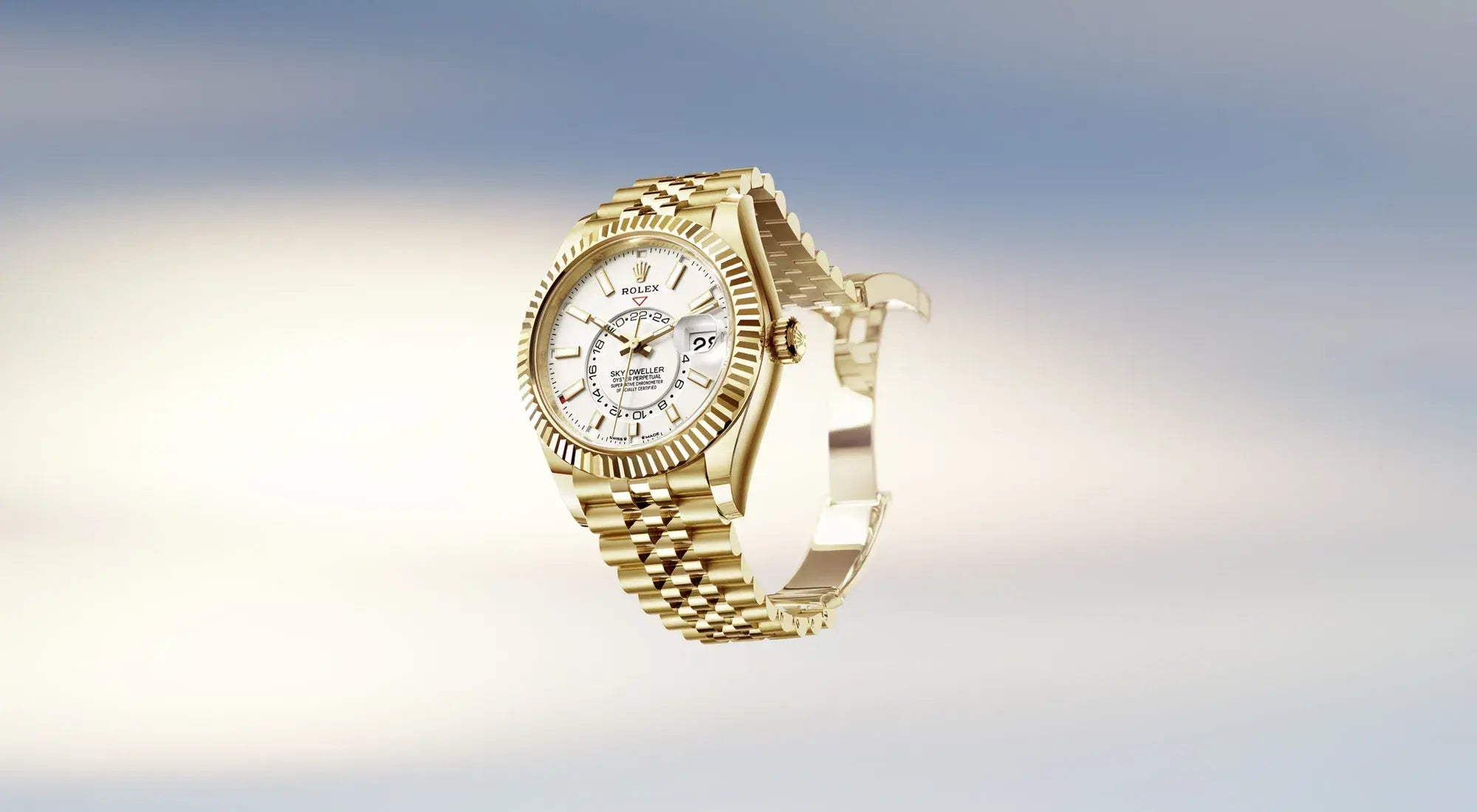 El Oyster Perpetual Sky‑Dweller, elegante y técnicamente sofisticado, se diseñó para quienes viajan constantemente por el mundo. Dotado del calendario anual Saros y del sistema Ring Command, indica simultáneamente dos husos horarios, así como la fecha y el mes, y permite ajustarlos con un simple gesto.