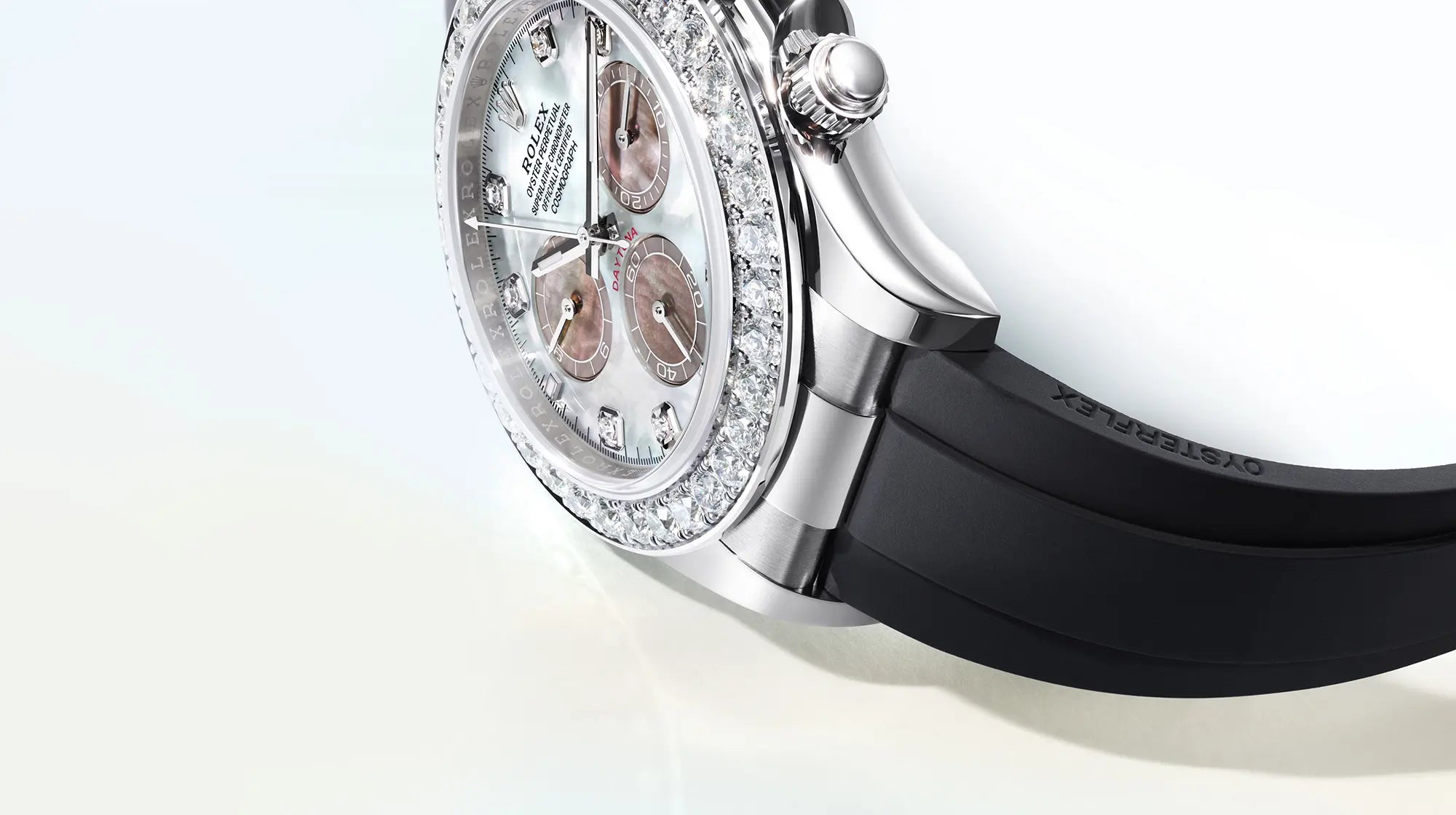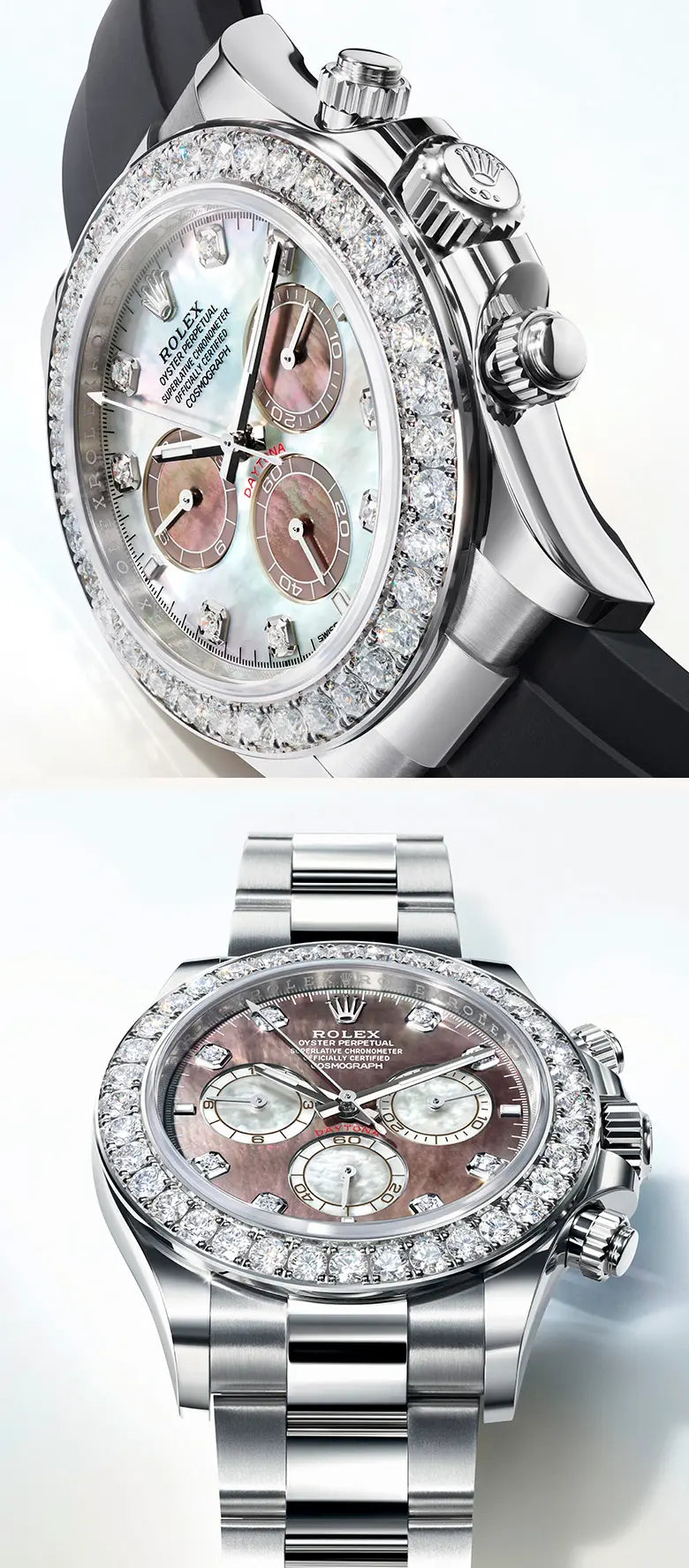 En la primera modalidad, provista de un brazalete Oysterflex, la esfera es de nácar blanco, mientras que los contadores del cronógrafo sonde nácar negro. En la segunda modalidad, dotada de un brazalete Oyster, esta configuración