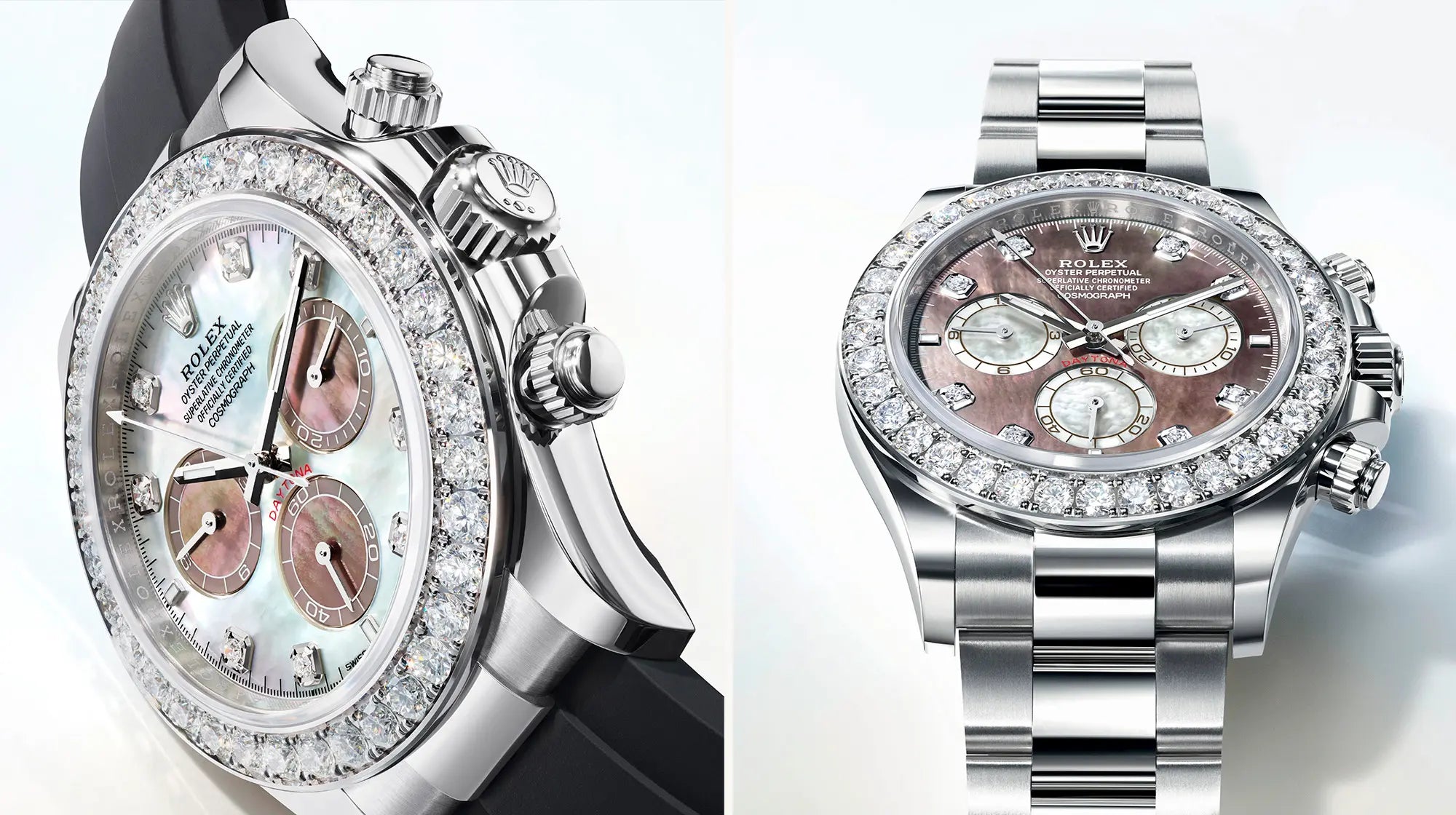 Las dos nuevas reinterpretaciones del Oyster Perpetual Cosmograph Daytona representan el perfecto equilibrio entre precisión y preciosidad. Ambas exhiben un sutil contraste de colores, lo que contribuye