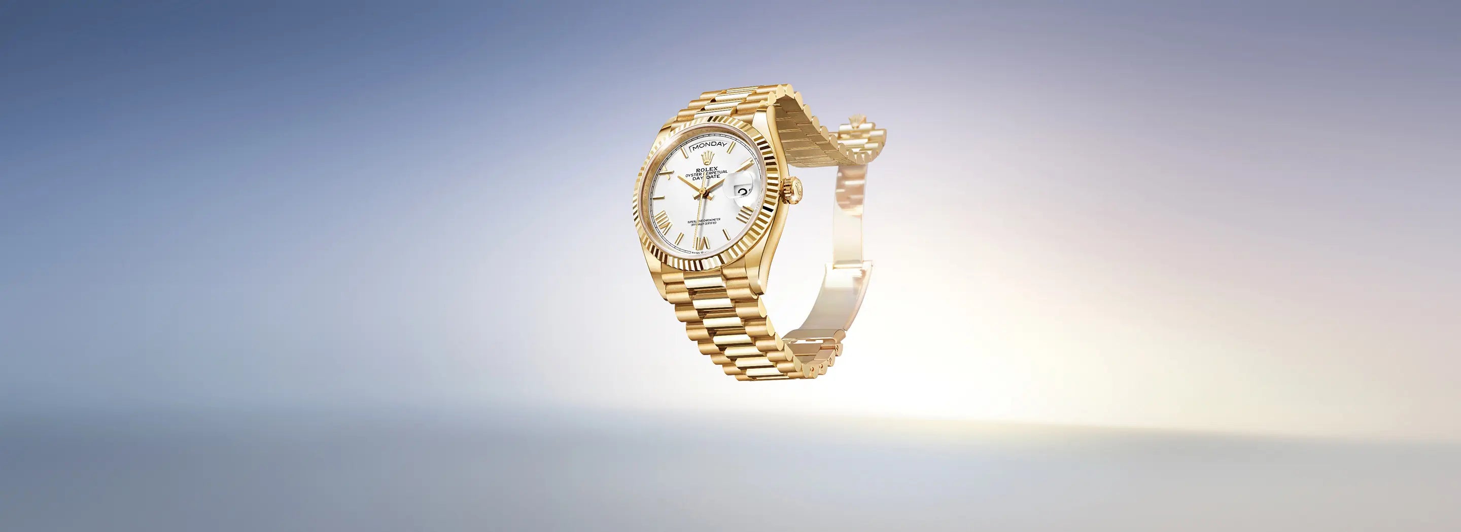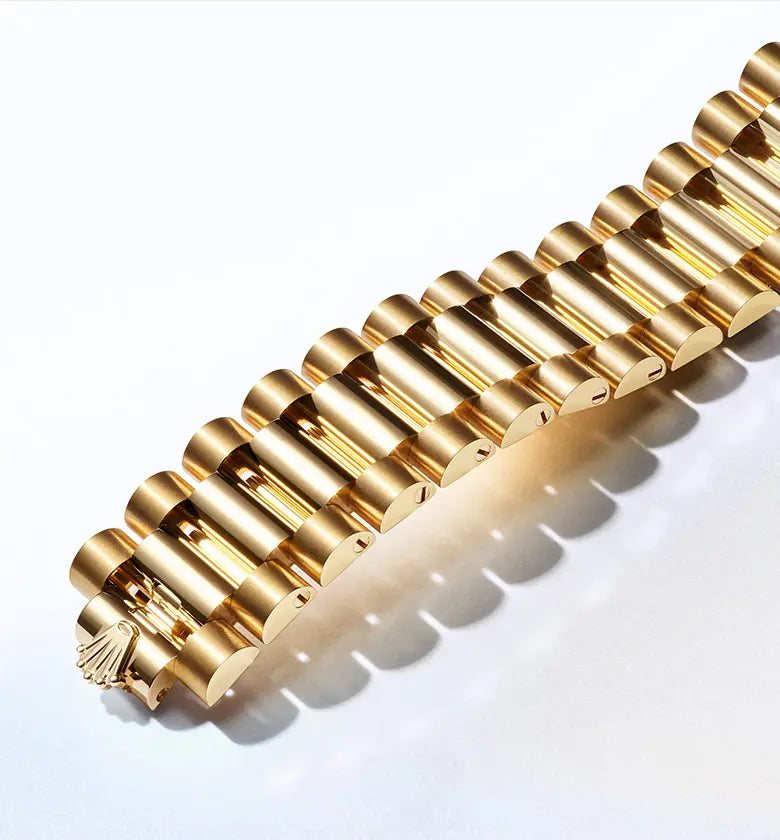 El Day‑Date 40 y el Day‑Date 36 están dotados de un brazalete President. Creado especialmente para el lanzamiento del prestigioso Oyster Perpetual Day‑Date en 1956, este brazalete de tres elementos, fabricado exclusivamente