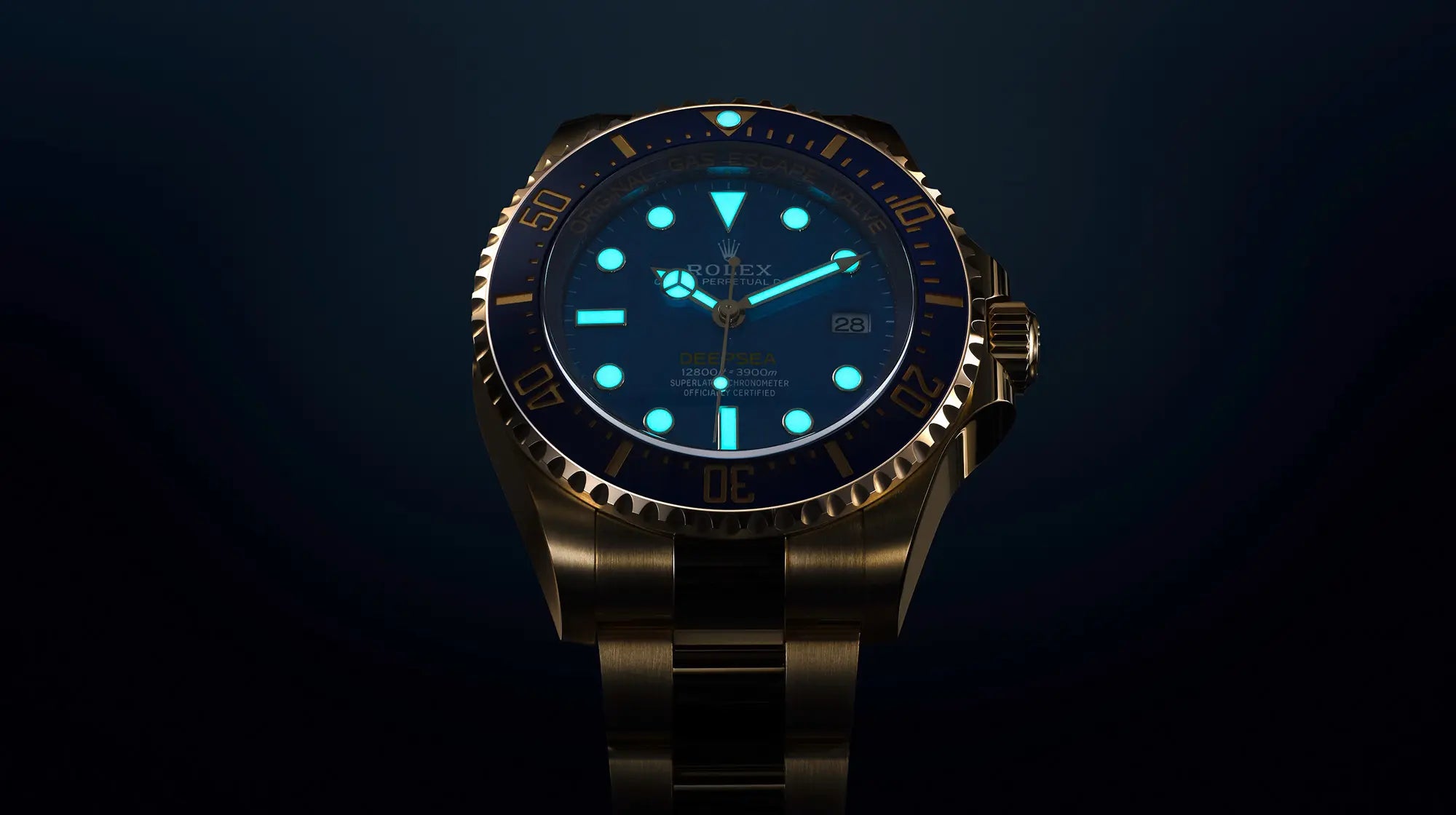 Preciosa y técnica. Majestuosa e innovadora. Un reloj solar para los abismos oscuros. Rolex presenta una nueva versión del Oyster Perpetual Rolex Deepsea, concebida para iluminar incluso el fondo del