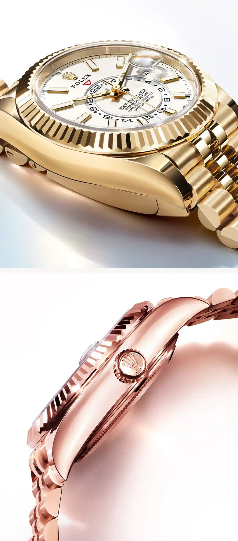 Rolex presenta dos nuevas modalidades del Oyster Perpetual Sky‑Dweller en oro de 18 quilates, ambas provistas de un brazalete Jubilee.