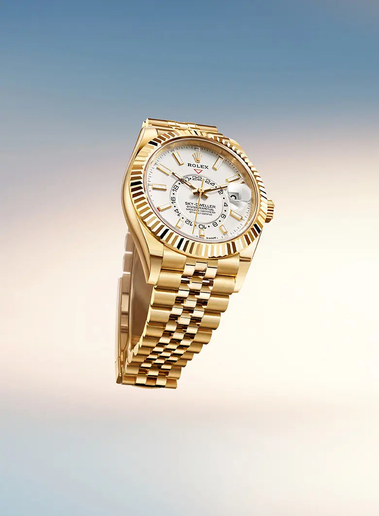 El Oyster Perpetual Sky‑Dweller ha sido concebido para que los grandes viajeros puedan orientarse en el tiempo. Para el deleite de los sentidos, las modalidades de este reloj lucen una sinfonía de reflejos