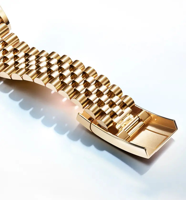 El brazalete Jubilee de estas nuevas modalidades está equipado con un cierre desplegable Oysterclasp y dispone del cómodo sistema de extensión rápida Easylink, desarrollado por Rolex, que permite ajustar fácilmente