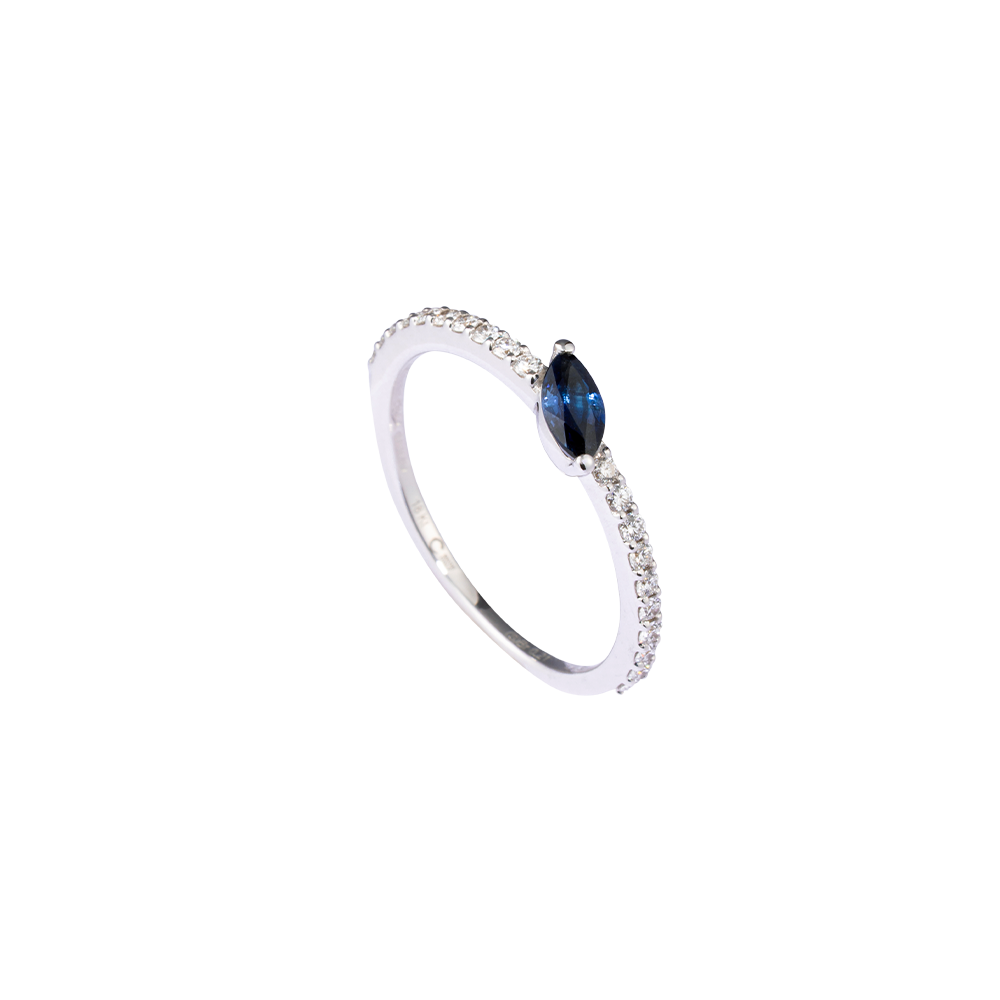 Anillo Oro Blanco con 0.21 cts de Diamantes y 0.3 cts de Zafiros
