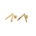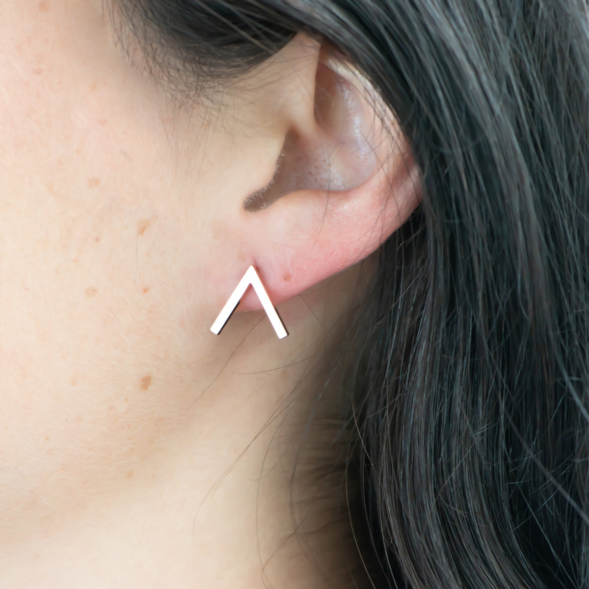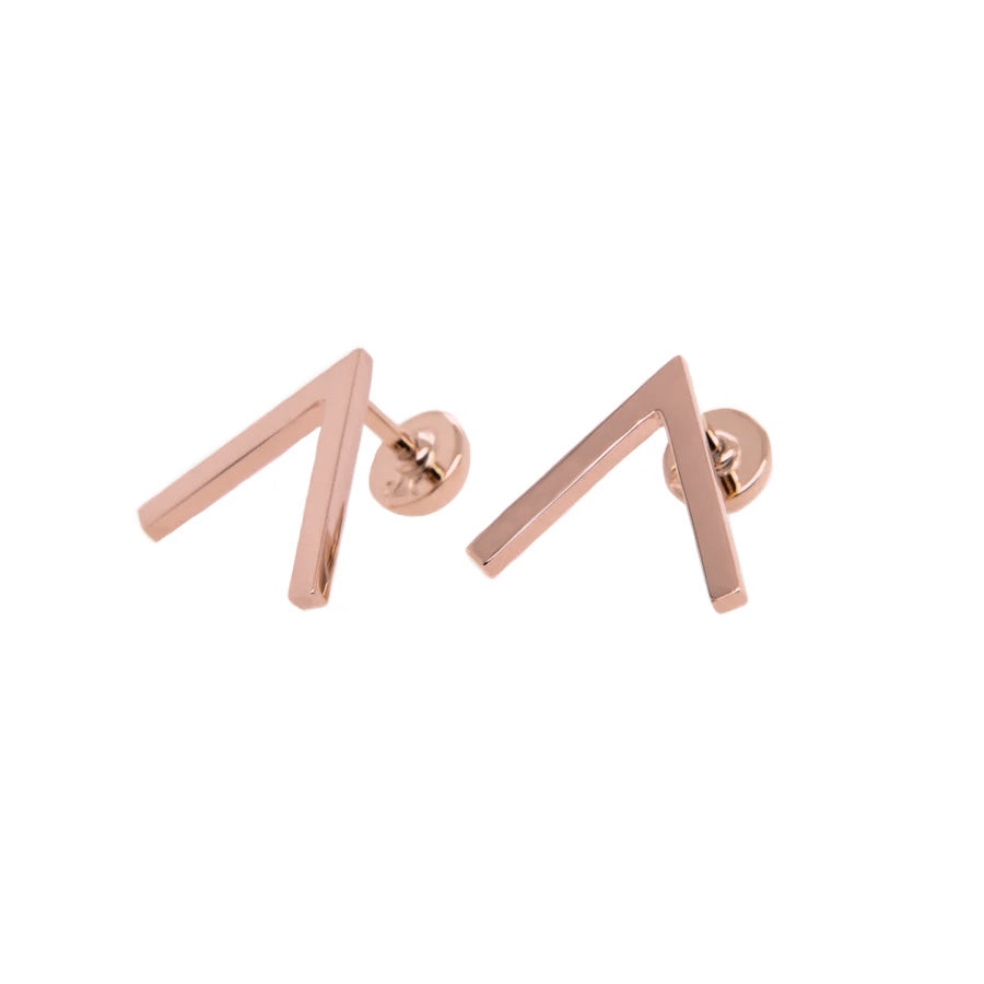 Aretes duarett: botón en oro rosado de 14 quilates en forma de triángulo abierto, contras de media luna, pueden utilizarse de manera reversible.