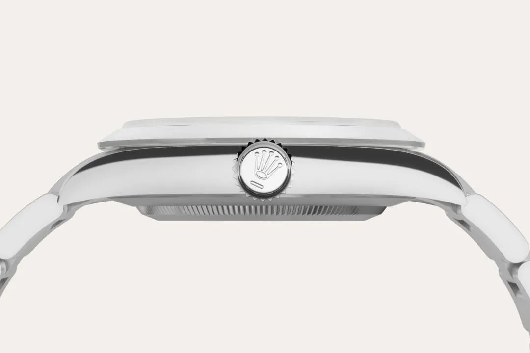Rolex utiliza acero Oystersteel para las cajas de acero de sus relojes. Especialmente desarrollado por Rolex, el acero Oystersteel pertenece a la familia del acero 904L, las aleaciones más utilizadas en la alta tecnología y en las industrias química y aeroespacial, en las que la resistencia a la corrosión es esencial. El acero Oystersteel es extremadamente resistente, ofrece un acabado excepcional al ser pulido y conserva su belleza incluso en las condiciones más extremas.