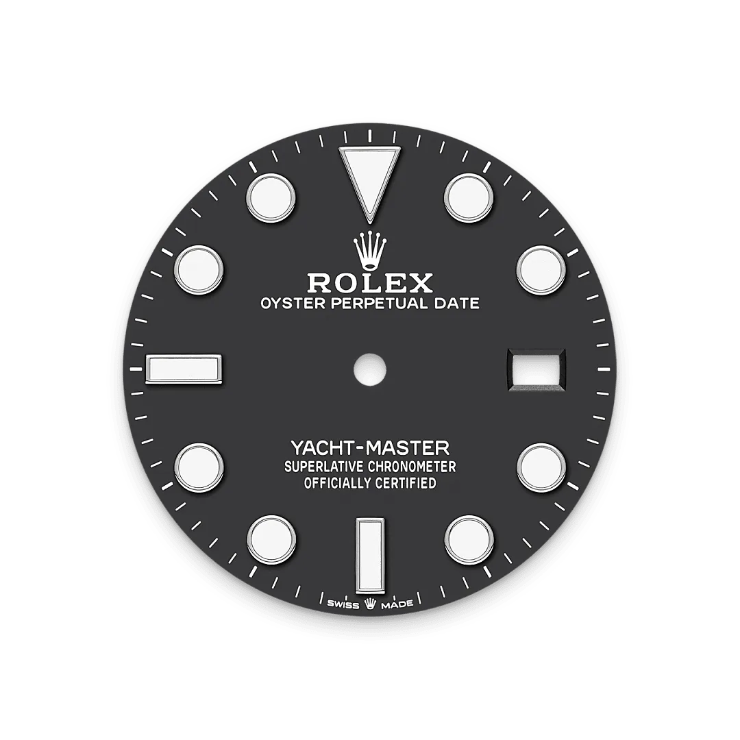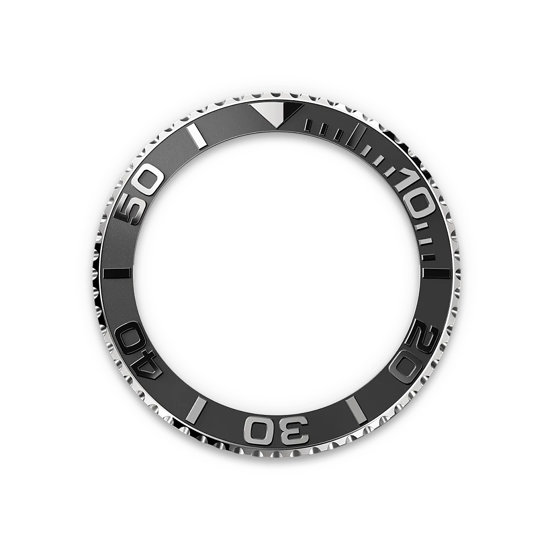 El bisel giratorio bidireccional graduado 60 minutos en relieve del Yacht?Master está realizado íntegramente en metal precioso o dotado de un disco Cerachrom de cerámica de alta tecnología. Los números y graduaciones pulidos en relieve destacan claramente en el fondo mate pulido con chorro de arena. Este bisel funcional —que permite calcular, por ejemplo, el tiempo de navegación entre dos boyas— es además un componente clave de la distintiva identidad visual de este modelo.